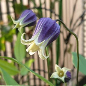 ベル型クレマチス 雫 とっても小さなお花だけど、丈夫でツルもどんどん伸びて、花もたくさん付けてくれています。 来年は少し長身のオベリスクに沿わせてあげなくては、と思っています。(*^^*)💜