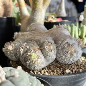 おはようございます☁️ 冷たい雨は止みそうな気配ですね。週末は気温が上がりそうなので、今のうちに園芸作業の準備をしておきたいところ。 写真は人気の塊根植物ブレビカウレ。 恵比寿笑いという和名からなのかわかりませんが、花言葉は「幸せを呼ぶ」「幸運」「繁栄」などとなっているそうです。 縁起の良さそうな和名に惹かれお迎えしました。