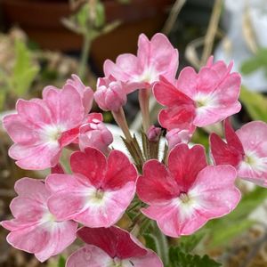バーベナ🌸 昨年お迎えしたピンクパフェが 咲いてきました🌸 でもなんか花色が変〜⁈😅💦 春は綺麗に咲いてたけど...🌸 あの色彩には戻れないのかなぁ⁈