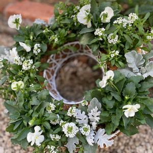 リースバスケットに初挑戦🔰 何色にしたら良いか分からず、とりあえず困った時の白頼みで白でまとめてみましたが、これで良いのか分かりません💦ちゃんと育って白いリースになりますように‼︎