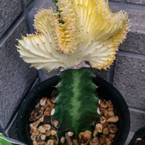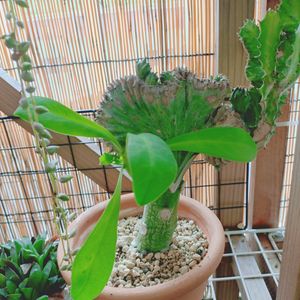 ダイソーのラクテア(マハラジャ)を軽石用土で、そんなに水やりをした記憶は無かったが、葉水スプレーをちょこちょこしていた記憶がありました。 他のユーフォルビアは元気そうなので、根っこの確認まではしていません。 通気性の問題かも知れないので、ダイソーの台形鉢は、ひょっとして、根鉢になったら大変なので、インナーを見つけて、植え付けしました。 下に受け皿を設けているので、インナーとカバー鉢に受け皿と通気性を阻害していたかも知れないので、隙間を設けました。 台木は、損傷部を切って、様子をみていましたが、どんどん酷くなったので、半分諦めていますが、最後の手段として接ぎ下ろしを施してみました。 今のところは、触った感触で、柔らかい状態ですが、酷くはなっていません。 なので、乾燥目的として、卓上扇風機を使って、乾燥させるようにしました。 様子みて、快復することを祈るばかりです。