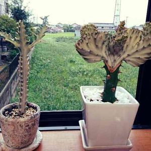 😭😭😭😭😭 大事にしていた、 ユーフォルビアのマハラジャさんが こんな状態に😭😭😭😭 寒さが原因だと思うのですが… どうにか復活する方法はないでしょうか? 😭😭😭😭😭😭😭