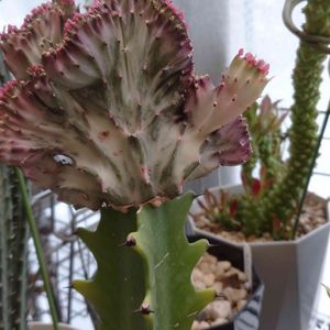 マハラジャ ユーフォルビアの仲間、トサカみたいなラクテアがサボテンみたいなキリン角に乗っかって(接木)、マハラジャになってる❣️何やらニョキっと生えてきた(ºㅁº)!?!! 🏷ムーミンの日 に参加しま~す
