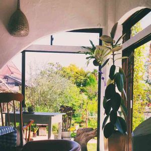 素敵なカフェに行きました お庭もステキでした ハーブや食用花、多肉に果樹 目の前には田んぼもありました 幸せ気分になりました ケーキを頼むと お庭から摘んだハーブとお花 添えてくれました