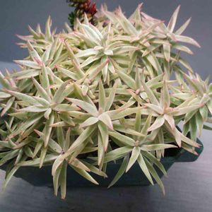 挿し穂用三角プラ鉢一杯に,育ったフクリンオノマンネングサ. フクリンマンネングサと略した名の場合も,この,オノマンネングサの斑入り(フクリン,覆輪)を指す. この鉢,いつ挿したか忘れたけど,庭木の下に放りっぱなしにしてても、今年はキレイに背丈を揃えて茎夏姿に. 初冬に魅せる,ピンクの縁取りも、なぜか薄っすら始めてる. 今年は,この鉢で,別名姫笹と呼ばれる,紅葉姿が楽しめそうです
