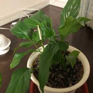 小さい苗から育てているスパティフィラム 今年の真夏の炎天下に留守中に母が庭に出してしまい葉っぱが大ヤケド😭 やっとここまで復活してくれました☺️ ただ、この3年程花が咲いてくれません。。 肥料あげたり、色々試してるんですが、 葉っぱだけが成長してしまって😅 お水も沢山飲むので何日おきかにたっぷりあげないとすぐ葉っぱが、しな〜っとなります。 鉢は何年おきかに大きくしてるので、窮屈ではないと思うんですけど、肥料のリンとかチッソとかの配合で花か葉っぱが成長が変わると本に載っていたような。。 肥料を変えれば花芽がでるんでしょうか??