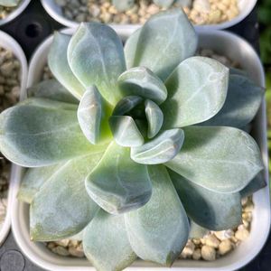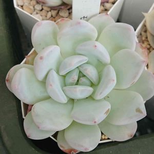 プレステラ90から105に鉢増ししたモンローさん👏✨ 葉挿しもらおうか、悩んでしばらくこのまま☺️大きくなあれ 来た時は外のお粉ハゲてたけれど、どんどん色白に💕 ムチムチボディー、透き通るような色 たまりません🤤