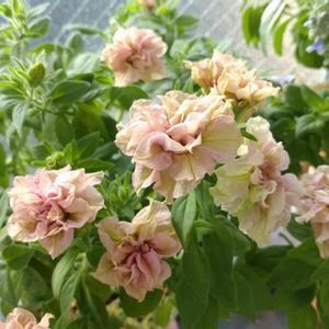 今日の八重咲きペチュニアてまり珊瑚さん✨ まだまだ葉っぱが見えてる部分の方が多いけど、うちのペチュニアの中ではよく咲いてくれてます💮🎊👏