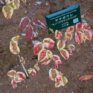 深いワインレッドの葉っぱです。あらっ、ネームプレートの左半分がありません。右半分の文字を頼りに調べてみました📖 「kousa 紅葉」で検索🔍 すると「Cornus kousa ヤマボウシ」と出てきました👀 冬の紅葉なんですね🙌(農業試験場内にて)