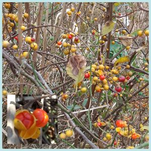ツルウメモドキ ニシキギ科ツルウメモドキ属 果実は秋に淡黄色に熟し、3つに裂開し、鮮やかな橙赤色の仮種皮に被われた種子が現れます。種子は鳥に食べられて散布されるそうです。 よく見るとほんとに3つに割れてます。 🏷山野草マニア
