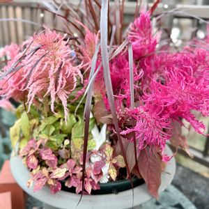 9月にビオラまでのツナギで作った寄せ植えが…… ライオンハートが豪華絢爛に(♥Ü♥)↑↑ ケイトウなのに……なんかすげーっ 12月ももちそうだね😊 (4枚目は9月の様子) セロリア(ケイトウ)ライオンハート 白の髭&亜麻色の髭 アルテルナンテラ フロールコタキ キャッア マーキュリー パープルファウンテングラス
