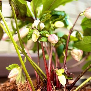 『クリスマスローズ HGC ピンクフロスト(童仙房)』♡♡ 開花までもうひと息♥️ 頑張れ~✨✨✨ (二ゲルとリビタスの交配種)
