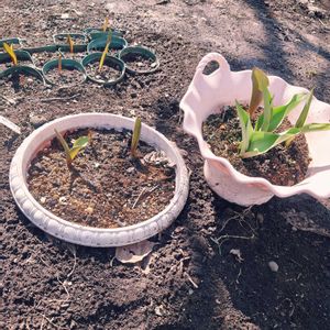 昨年秋、お庭改造で掘った時に出てきた植えっぱなしだったチューリップの球根達…鉢ごと地面に埋めて越冬させてみましたが…上手く芽が出て来たようです🌷 ポットのほうは、開花してくれたら、寄せ植えに使ってみたいと思ってます☺️