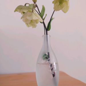 バラの一輪挿しにクリスマスローズ🌹 切り花としての購入は初めてでしたが、宿根草にしては中々水持ち良いです(*´∀`*) お庭で咲いていたならサイコーでしたが、さすがにまだ開花は早すぎですね💦