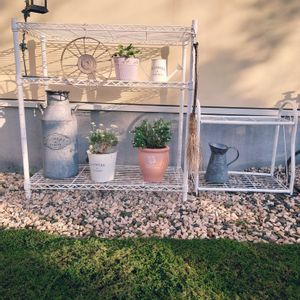 お花の季節本番前に、久々のDIY塗装🎨 →②Before 奥様の実家の物置を新調した際に出て来たサビだらけの古いスチール棚を… →③After 塗装してプランター棚に。ついでに既存の棚も塗ってみました。 …サビすぎて分解に泣く程苦労しましたが…これからは、沢山お花をセッティング出来そうです☺️