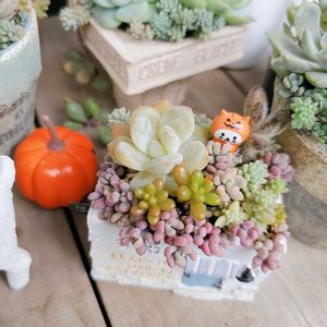 手直しなしでも なんとかキープの 寄せ植えです꒰⌗´͈ ᵕ `͈⌗꒱ ダシフィルムが ハロウィンカラーで♡♡ 今日は留守中にとけちゃった ダシフィルム達の お世話をします٩(ˊᗜˋ*)و”