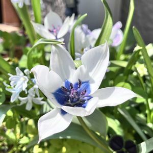楽しみにしていた チューリップの開花⋆⸜🌷⸝⋆⋆⸜🌷⸝⋆ 白い花びらに綺麗なブルー🤍💙 (*ˊᗜˋ*)♡kawaii 地植えと鉢植えに 半分ずつ秋に植えたけど 地植えの球根が見事に不発💦 葉っぱしか出なかった〰️😂💧 半分半分にしておいて良かったε-(´∀`;)ホッ 毎年咲く原種系なので また来シーズンのために 地植えは早めに掘り起こしたけど 埋めたままの方がよかったのかな? pic③ つぼみでもう可愛い🌷💕