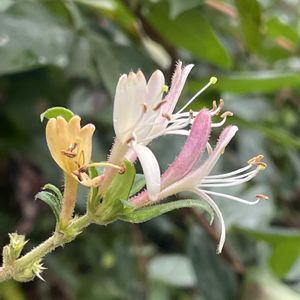①、②スイカズラ ③、④マムシグサ スイカズラ(吸い葛・吸葛・忍冬) スイカズラ科スイカズラ属の常緑つる性木本。 別名、ニンドウ(忍冬)やキンギンカ(金銀花)。 ○まだ花が咲いています。 マムシグサ マムシグサの実は、最初は緑色ですが、秋(9月から10月頃)にかけて黄色から橙色、そして最終的に真っ赤に熟します。実の着き方はトウモロコシの小さい版ですが、シュウ酸カルシウムなどの有毒成分を含んでおり、食べると激しい痛みや炎症を引き起こすため大変危険⚠️😱