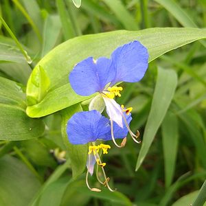 おはようございます😊 🏷 今日のお花ツユクサ😊 散歩道で咲いていました😄 ①② ツユクサ ③ マムシグサ ④ ヘクソカズラ ⑤ タンポポ