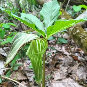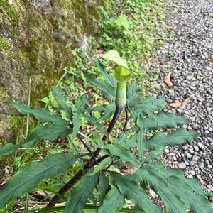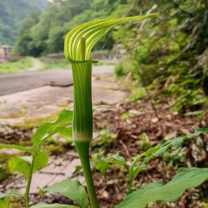 山道に咲いていたマムシグサ。 出会うと名前のようにギョッとしてしまいます😅 ⑤もマムシグサでいいのでしょうか❓️