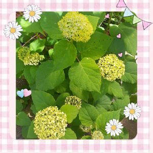 アナベル 沢山のお花が開花 本当に小さい花びらです 日毎に大きくなって色も 白くなって来ます でも、今の花びら位の時 可愛らしくて好き💖