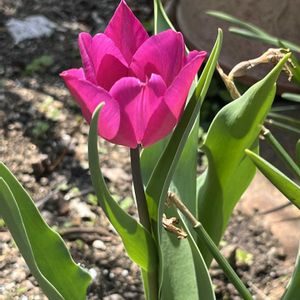 普通のチューリップだけど🌷可愛いな🥰 こぼれダネからのネモフィラ ローレンセラ ビオラ 名前不明