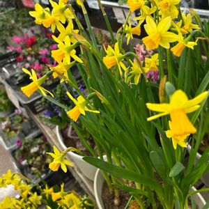 おはようございます😊🌷 また夜中に目が覚めました。。。 昨日行ったホームセンターで見かけたスイセンです♪ 誰が買うのかな?と思いつつ 見てました。 スイセンって長い間咲いていないですよね?!? 特に球根モノはね。 ヒヤシンス🪻ピンクの球根を買いましたよ❣️ もう葉っぱの間からちょっぴり花芽が上がって来ています。 これからリビングの暖かい場所に 置きます❣️