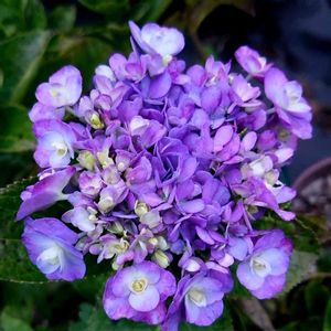 今日のアジサイ⑫ 綾波💜♥️ 綾波レイ?😅 ガクアジサイなのに真ん中の両性花も豪華 しかも八重咲きと。 土次第で青💙にも。 全体が色に染まった後、徐々に色が抜け緑色に なり、秋色アジサイとして楽しめるそうです😍何て素敵な😍 最後まで見てみたい! この時は、同じ株に色んな色が出ていました。(6/2) お洒落なアジサイですね。 加茂花菖蒲園 作出