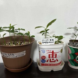 4:00 ☀️ 13℃ 今日のお花はレモン🍋 昨日ベランダデビューしたばかりなのに〜🤪 2025.3.5にも投稿したのに〜🤪🤪 まだちいちゃいからお花はないのです😢 でも、芽🌱が出ている分だけでもと… 1枚目 今育てている全部 2枚目 お蕎麦屋産のレモン サワーからの埼玉産 3枚目 看板通りスーパー 産 4枚目 友友の店のサワー から 5枚目 上からの画 GS先生によると、レモンはすぐ大きくなるようなので、この春は楽しみです ちゃんとした実は10年とかかかるそう😳 あと、隣の葉と擦れて病気になりやすいから注意⚠️だそうです 植え替え大変だ! 7:30 ☀️ 20℃ですよ!