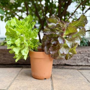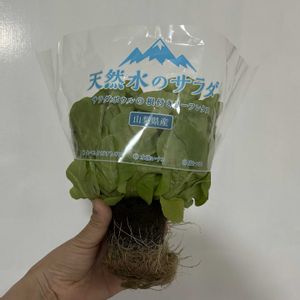 7:30 ☔️ 外気温10℃ 根と土付きリーフレタスです これは植えなきゃいけない使命感に駆られ、鉢植えにしました🪴 そして、本日からのサラダになります🥗 食べても育ったらうれしいな😋 かいわれ大根と三つ葉も買っちゃった🥰
