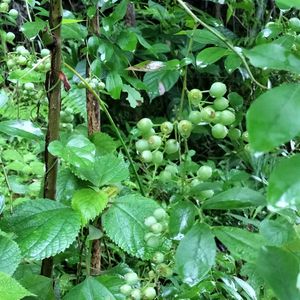 今日はよく雨が降りました。 仕事帰りに雨がやんでいたので畑の見回りに 1⃣今日の収穫 初!キュウリ ネギ、ブルーベリー ピ-マン、野いちご 2️⃣スイカ 今日の時点で5つ無事に大きくなってくれるといいけれど 3️⃣桃 今年こそは1つくらい食べたい。 4️⃣富有柿 木も大きく成長して今年はたくさん実をつけています。 5️⃣ニンニク 花が咲きそうです。