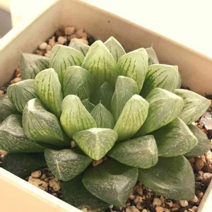家のハオルチアの家族♪ 祝宴が手前のちび 右がシンビフォルミス 左が花鏡 上が雫石 透けてて癒されます(*´▽`*)