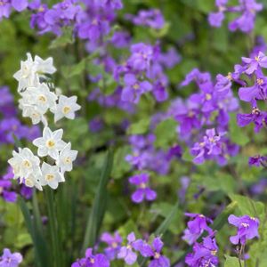 💜水仙ペーパーホワイト&ムラサキハナナ💜 水仙が今年は長く咲いてます。 ムラサキハナナとコラボして咲いてるのは初めて見ました(*^^*) 紫の中に真っ白い水仙が映えてました❣️