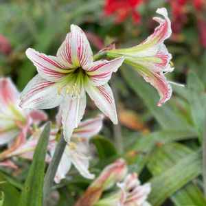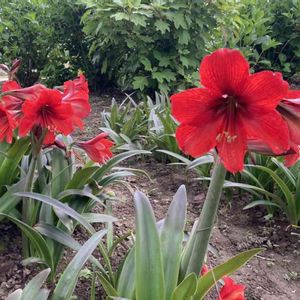 💚アマリリス💚 友人の田舎のアマリリス❣️ リュウノヒゲを移動した時にアマリリスの球根が一緒にあったらしい😅 最初はお花がひとつ咲いて、だんだん増えていき今年はたくさん咲きました。 アマリリスってチューリップ⸜🌷︎⸝のように小さくならずに増えて行く、(○-∀・)bいいね!