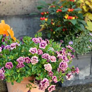 今シーズンに冬越しした カリブラコア&ペチュニアです😀 お花が咲いたのは 今のところ この子達ですが まだ お花が咲いてない子もいるので また投稿します😊 左上:エム・アンド・ビー・フローラ 花衣 黒真珠 左中:SUNTORYミリオンベル プチホイップ ラムレーズン 左下:PWスーパーベル ダブルピンクリップル 右上:PWあふれ咲きペチュニア ラズベリージャム 右中:PWあふれ咲きペチュニア ブルーベリージャム 右下:SUNTORYミリオンベル プチホイップ ストロベリー