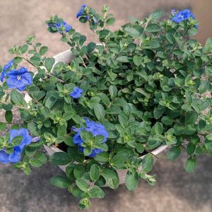 エボルブルス ブルーラグーン ぴょこぴょこと枝先が伸びてきて心持ち大きくなった気がします 大満開🌸ではないけれど日々それなりに開花するので翌朝には花がらがたくさん🥀 時間のあるときにパパッと払っています 先週、今年初めてお店でブルーラグーンを見ました🌱 こんなに小さかったのね…! 一年で随分生長しました