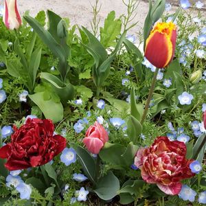 桜とチューリップ マリリンとビオラの饗宴 🌷🌸🌷🌸 今しか見られない花の饗宴に出会え幸せ🎶 全国のマリリンさんを思い出しました。 素敵な名前のチューリップがあでやかに咲いています(∩˘ω˘∩ )♡ くるりんの花弁が可愛いので 🏷くるくるまき^o^参加します🤗