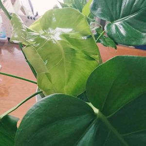 おはようございます。 班入りのモンステラデリシオーサ さん(親株) 某 大型ホームセンター出身 個人的に本田さんと呼んでます(笑) 葉と葉の間隔が狭くてあまり徒長しないみたい… 日照に問題は無いので水不足か 元々そうゆう個体なのかな💚 葉っぱ同士が重なってしまってよれてしまうのがちょっと勿体ないなー 少し水の量を増やしてみます この子で180cm越えは時間がかかりそう🤔🤔 ホコリが溜まってきてるので 時間を見つけてシャワー入れます🚿