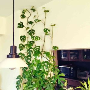 モンステラ属じゃない ヒメモンステラ(o´罒`o) 引っ越してきて半年 急成長しておりますw 天井まで到達! 次はどこへ行くのかな〜♪