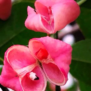 今日のお花、マユミ(檀)🍒 2025.11お散歩中🚶♀️のpic🍀 実が弾けている感じが可愛いですね💕