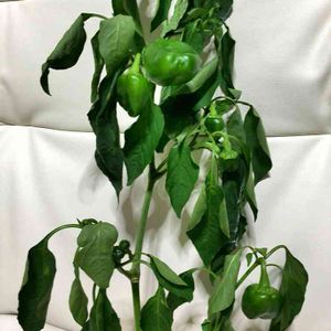 ピーマン臭が少ないピーマン💖 大きくなってきました😊 まだ食べてないので味はお伝え出来ませんが形がつるんと細長い感じ🎵