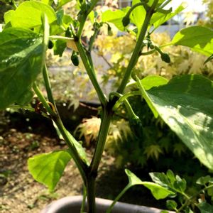 こどもピーマン。 育ってきてる🤗 子供が食べても苦くないようにって、こどもピーマンと言うらしい。