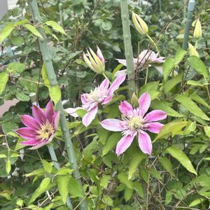 バラ🌹の花芽もだいぶ膨らんで 来ましたゴールデンウィークには 咲くかな٩( 'ω' )و👍❣️ ④クレマチスジョセフィーヌも 咲き始めました変化が楽しみです 🤗👍❣️ 🦍🦍🦍