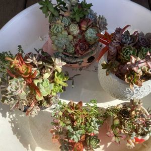 ①寄せ植え隙間が開いて徒長してる仕立て直しせねば🤔 ②〜⑤緑が多いけど何とか寄せてみました琴爪菊もカットして入れたよ ٩( ᐛ )و👍💓