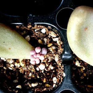 緑色ばかりですが… コロコロしていて可愛いです。 左下は親株の根元から顔を出しているルスビィのこどもたち😙