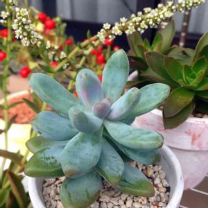 Sedeveria Blue Giant ブルージャイアントという名前に惹かれて 購入しましたが、 約半年間、変化がなく存在が薄い子です☘️ 紅葉しない葉は確かにブルー系ですが、 ジャイアントにはなりそうにもないみたい😅