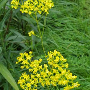 今日のお花 オミナエシ(女郎花) 女郎花の由来をGoogleサンに尋ねたら、「オミナ」とは女性 「ヘシ」は圧(へ)すが変化 [どんな女性も圧倒するほどの美人] 風に揺れる姿、小さな黄色い花が散る様子…… 何処か悲しげに見えたのは、私だけ?