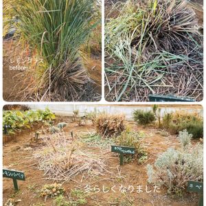 ようやくレモングラス剪定完了😅根元は剪定した葉でマルチング。他に、過酷な夏に耐えたローズゼラニウムやラベンダーの挿し木にもお布団を。 思いの外 寒さが厳しいので、なんとかがんばって冬越ししてもらいたいところです🙏 レモングラスのキレイな葉は、少し乾燥させて正月飾りに挑戦予定。うまくできるかな🤔