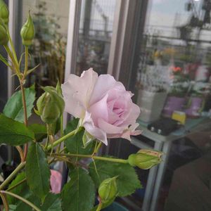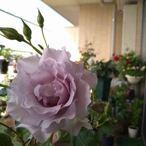 爽🌹 今年うどん粉がひどく消毒を繰り返し、一時は蕾がくしゃくしゃ気味でどうなることかと思いましたが、無事に咲きました。 咲くと薄い紫が美しい💕🌹💜