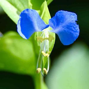 《露草》には雄しべが3タイプ🎶 上にX字形(3個)・中はY字形(1個)・下にO字形(2個)💛 実際に結実するのはY&O字形の花粉だそうです …X字形は虫寄せ🐼❓ この花の雄しべ、 6個とも茶色くなってなくて初々しいね♬ 露草の瑠璃より流る星六つ✨✨